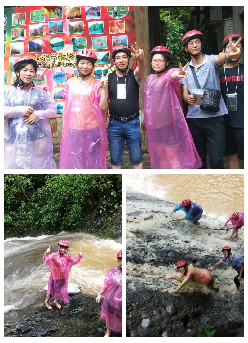 隨后游玩了古東森林瀑布景區,一部分人穿上裝備親身體驗可觸摸的瀑布,感受大自然的神奇。體驗完刺激的瀑布群后大家懷著愉悅的心情采購美食特產,準備歸程。