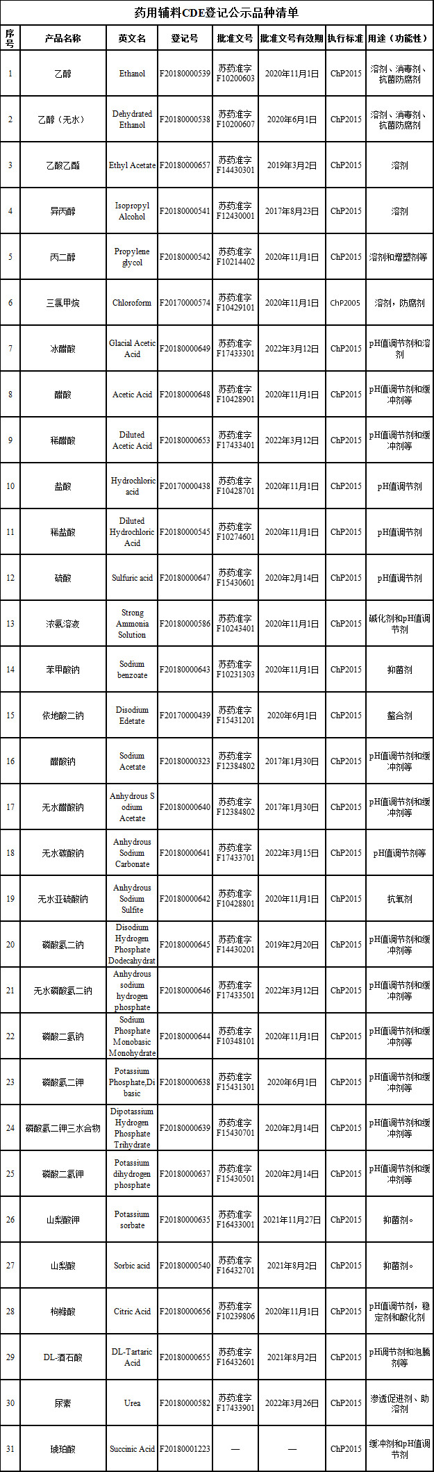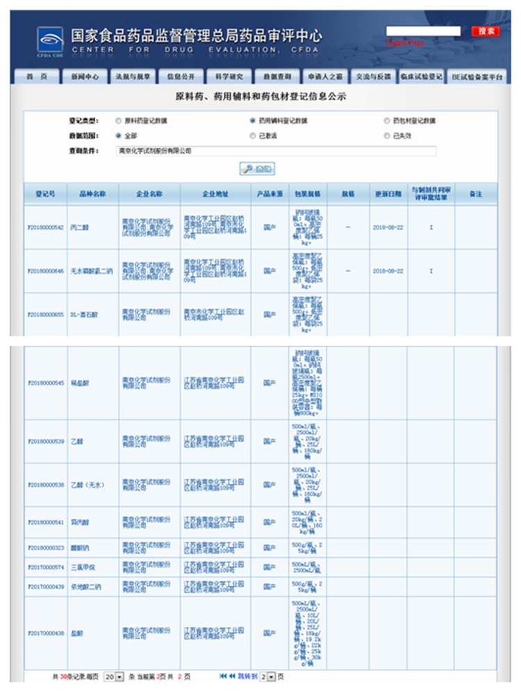 近日,南京試劑丙二醇和無(wú)水磷酸氫二鈉兩個(gè)藥用輔料品種登記信息在國(guó)家食品藥品監(jiān)督管理總局藥品審評(píng)中心網(wǎng)站(CDE平臺(tái))公示。至此,公司30個(gè)原有批件藥輔品種全部在該平臺(tái)完成備案公示。此外,琥珀酸等新增藥輔品種備案資料已遞交CDE平臺(tái),正在審核過(guò)程中。