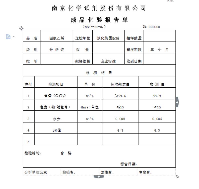 2、廣泛用作天然及合成纖維的干洗劑。也用作金屬的脫脂洗滌劑及一般溶劑、有機(jī)合成中間體等。