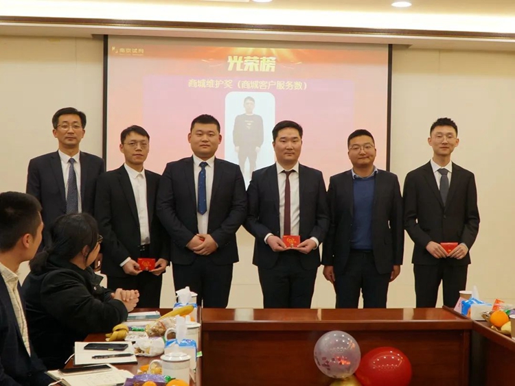 會議揭曉了2021年度“貓頭鷹計劃”,朱彬拔得銷售收入的頭彩,丁菲獲得平均顧客數獎;隨后,會議頒發了2021年度優良采購獎、新人鼓勵獎、售后服務獎、商城維護獎、顧客服務獎、營銷創新獎及銷售精英獎,李小龍等10人分獲各項榮譽。