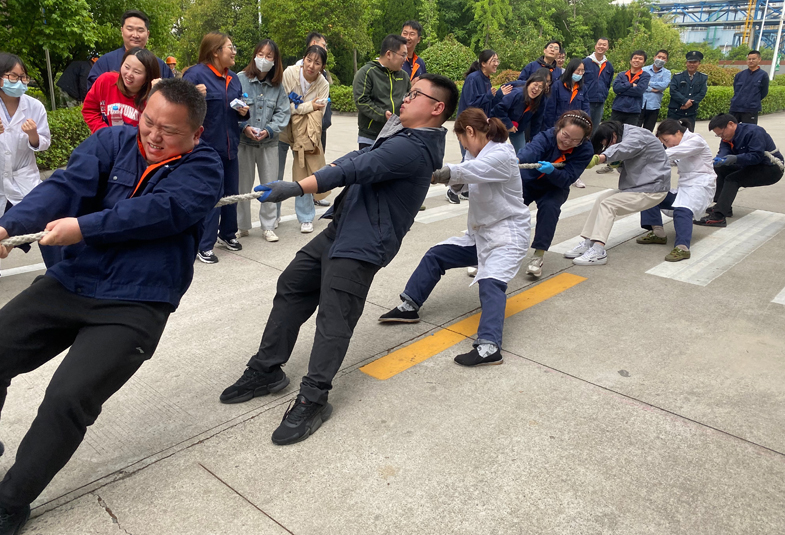 隨后,文體活動拉開帷幕。首先第一項是重頭戲——拔河比賽。各位參賽者排列整齊,斗志昂揚、摩拳擦掌、躍躍欲試,比賽采取三局兩勝的小組淘汰制。隨著裁判的一聲哨響,角逐開始,各支參賽隊伍卯足了勁,競爭異常激烈,啦啦隊則在旁大聲吶喊,加油助威,使出渾身解數。經過幾輪角逐,最后由生產一分廠隊獲得冠軍,品質部和拓展部聯合代表隊獲得亞軍,生產二分廠和藥輔部聯合代表隊獲得季軍。