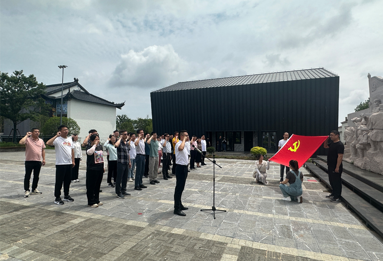 踏上青石板,重走烽火路,黨員、中高管仿佛置身當年烽火硝煙的戰場,聆聽著陳毅、栗裕、江渭清、王必成、葉飛、鐘國楚等將士的光輝事跡,一張張黑白照片、一段段文獻資料,一幅幅場影都“活”了起來,一個個英雄人物英勇的故事讓大家心潮澎湃,革命先烈們舍生取義的品格、艱苦卓絕的斗爭、堅韌不拔的毅力讓大家深深感動。在初心廣場上,黨員們面向革命烈士雕像,共同重溫了入黨誓詞。