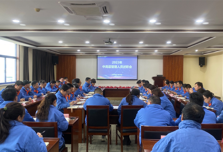 會前,2023年度在聘的中高層營銷、技術、管理人員提交了書面述職報告。會上,16位部門、分廠負責人分別作了現場述職發言,通過列數據、舉案例、擺問題、定措施,回顧了2023年工作成績和存在不足,展望了新一年的目標計劃和思路措施。