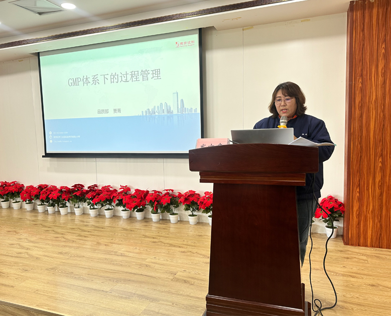 會上,質量總監回顧了2023年的質量工作。在堅持質量管理體系有效運行的基礎之上,編制實施了藥用輔料質量管理體系,進一步強化過程控制、現場QA檢查,強化標簽、COA、不合格品管理,質量管理不斷鞏固提升。同時,公司還實施了包裝、有機、硝酸、乙酸鈉、鐵銨鹽等多處車間廠房環境改造,引進自動罐裝機、真空上料機、噴霧干燥機、連續精餾塔、檢測中心ICP等設備和系統,完成乙酸鈷、冰醋酸、注射乙醇、變性乙醇等工藝改良,提升自動化、信息化、數字化水平,為高純試劑及高端藥輔產品生產提供保障。質量顧問就如何全面、系統貫徹執行GMP體系,從人、機、料、法、環等方面做了分享介紹。