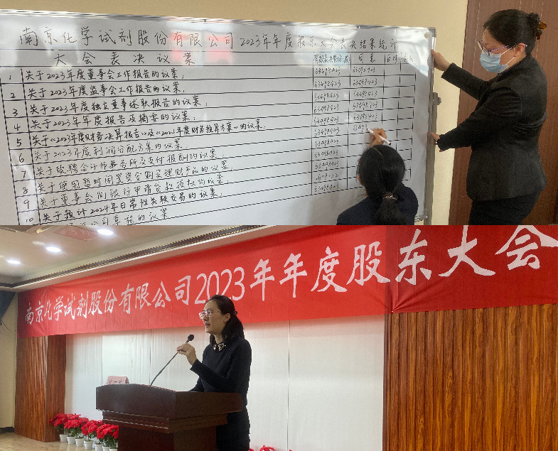 2月27日上午,南京試劑2023年年度股東大會召開。股東、股東代表、董事、監(jiān)事、高管和上海錦天城(南京)律師事務所律師代表等30余人出席。