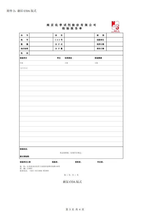南京化學(xué)試劑股份有限公司擬定-自2024.09.15對(duì)于[試劑產(chǎn)品標(biāo)簽及COA版式]進(jìn)行變更,詳情如下: